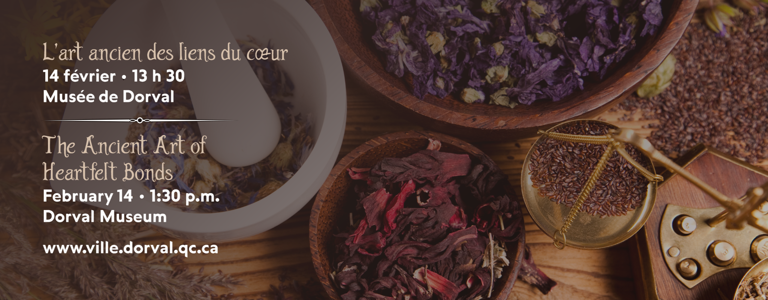 To celebrate Valentine's Day, the Museum invites you to a unique workshop-lecture led by Kirsten A. Miranda and Sarah Wolf on the ancient art of romantic herbalism. Come as a couple or with a friend to discover the evolution of herbs carrying meanings of love, kindness, and protection across cultures. From their role in medicine and cooking to their place in rituals of connection and attraction, plants carry stories that connect our past and present. The activity will conclude with a creative and fun workshop, where everyone will create their own symbol of love to give... or to cherish!
